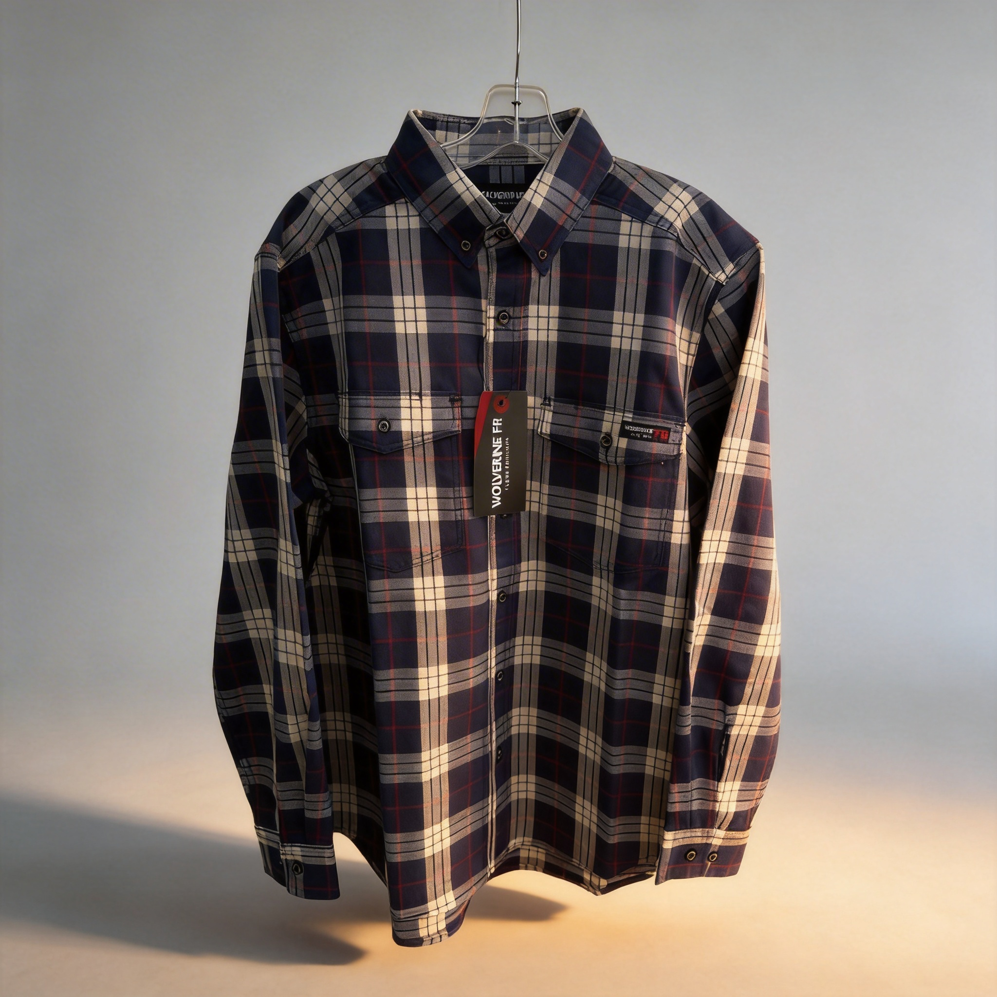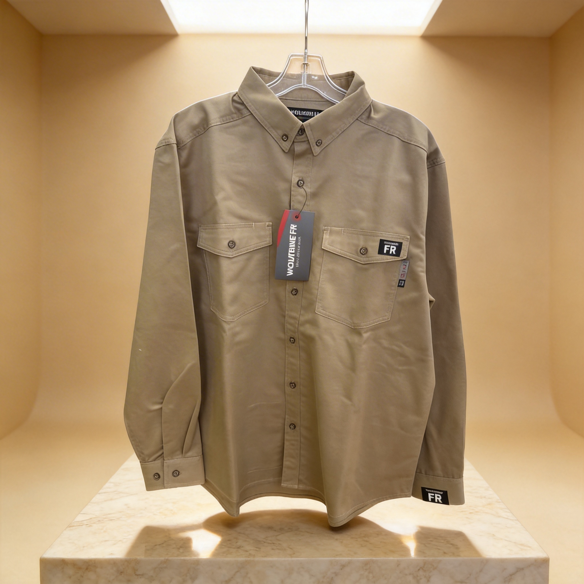 Long sleeve, fire retardant, meets all legal FR requirements. Beautiful and well made. Looks good for work or casual wear.