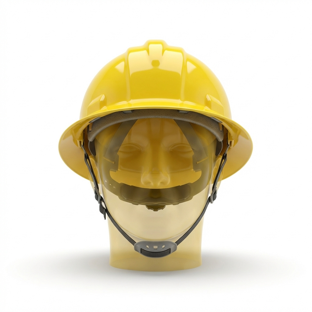 Durable safety helmet, fully adjustable fit.