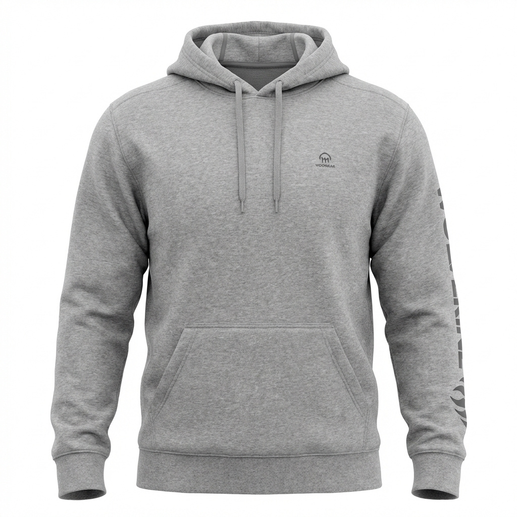 Warm hoodie with logo on arm. machine washable and pre shrunk. generous fit.