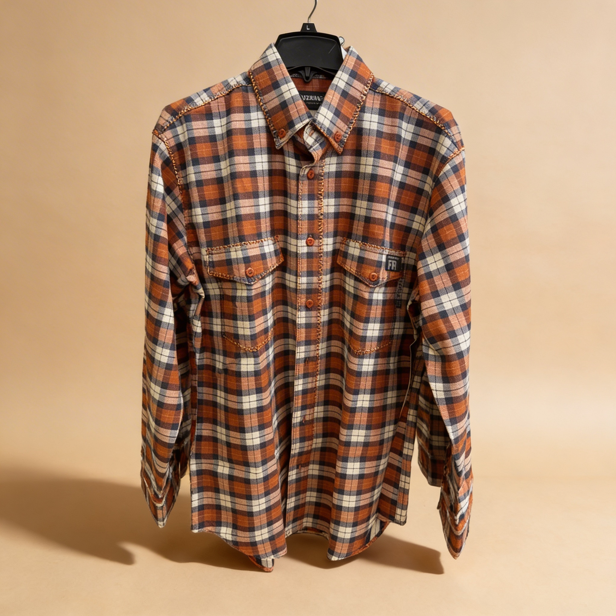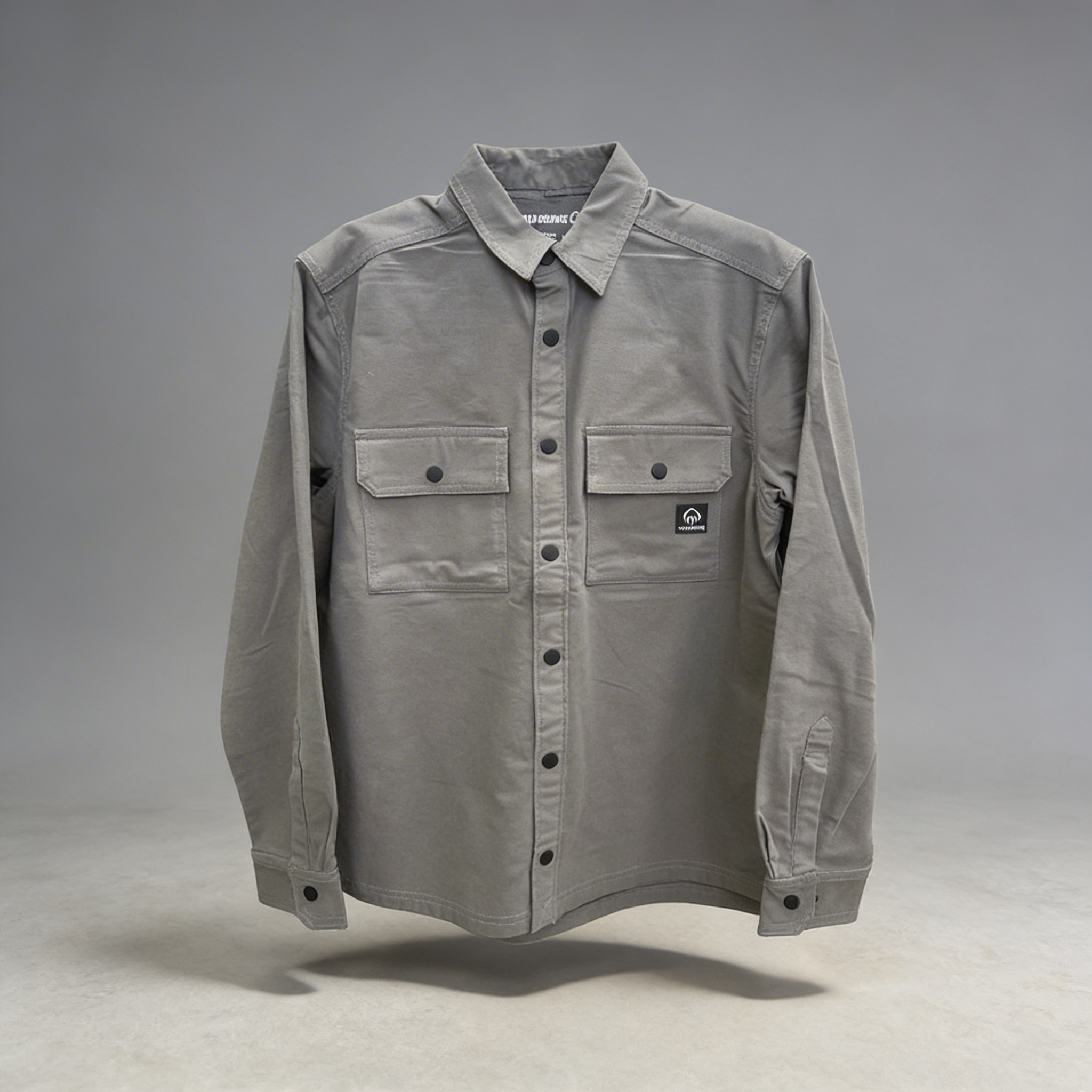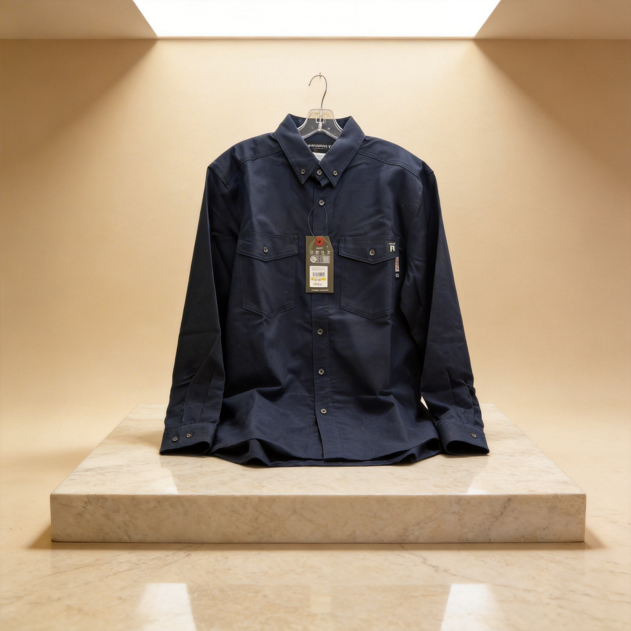 Long sleeve, fire retardant, meets all legal FR requirements. Beautiful and well made. Looks good for work or casual wear.