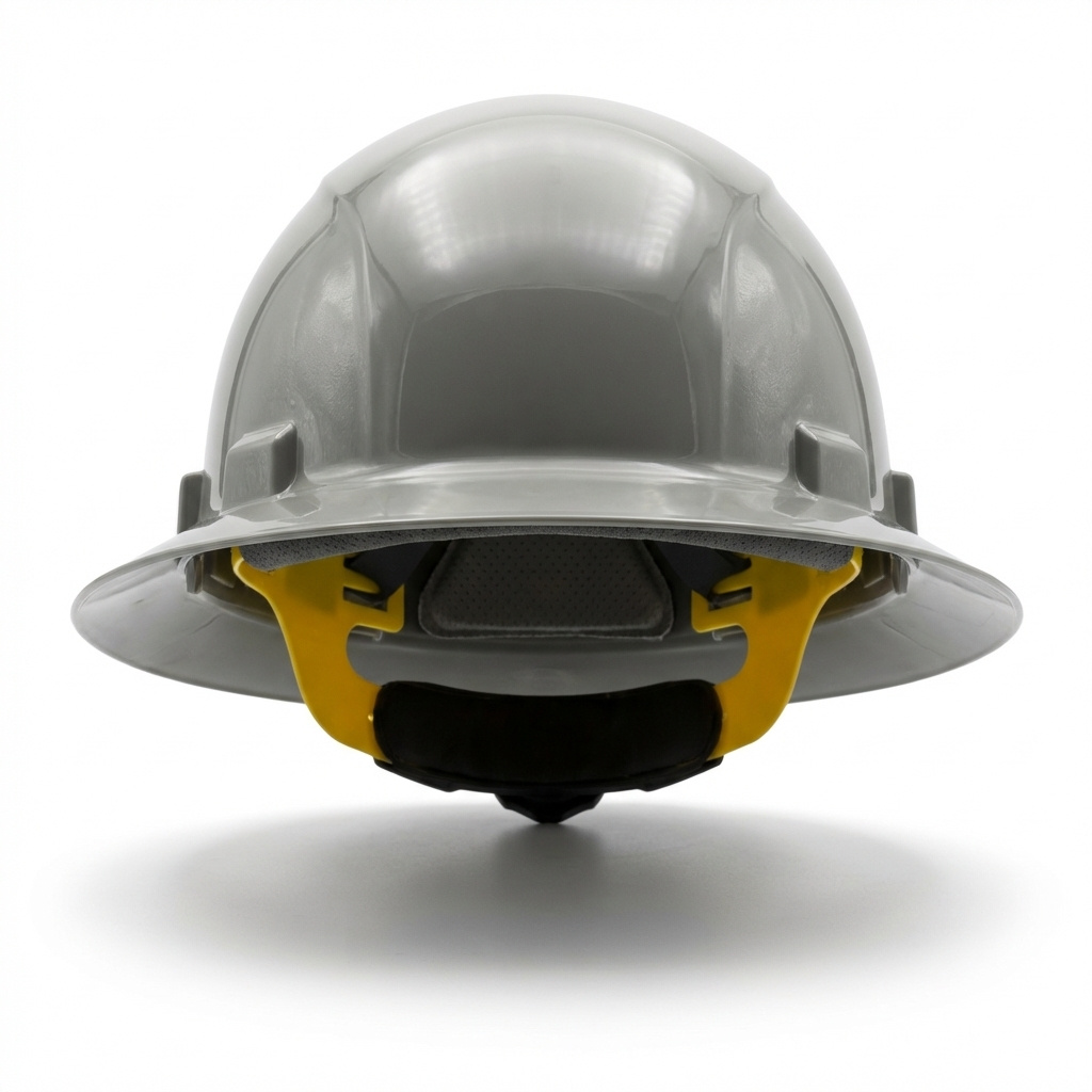 Durable safety helmet, fully adjustable fit.